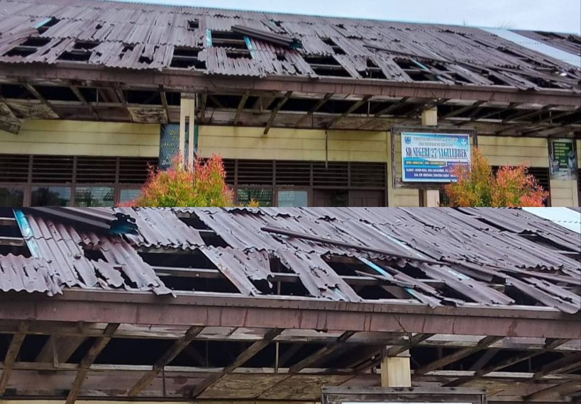 Dari dokumentasi yang di update salah satu akun Sateppu Dal R terlihat bagian atap sekolah banyak yang sudah bocor termasuk loteng sekolah dan tak layak lagi di gunakan.