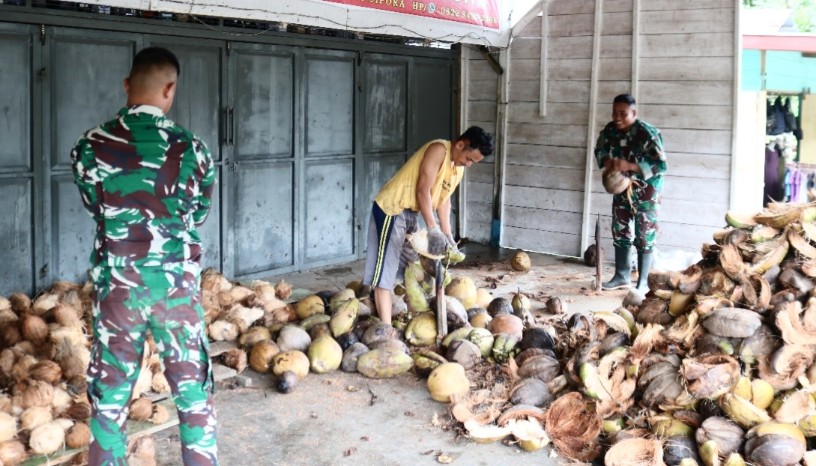 Dalam kegiatan itu, satgas TMMD sambangi warga yang memiliki usaha kelapa di km.8 Desa Sipora Jaya, Kecamatan Sipora Utara, Kepulauan Mentawai untuk mengetahui keluhan dan kesulitan masyarakat, Jumat (7/3/2025).