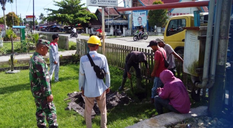 Pada kesempatan ini, pihaknya komunikasi dengan petugas PLN yang sedang mengerjakan pemasangan tiang listrik dan kebetulan di depan kantor Koramil sekaligus berbincang soal kelistrikan.
