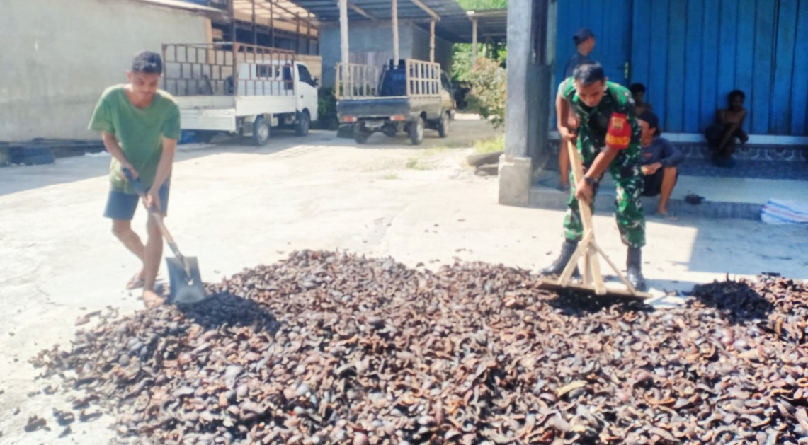 Dalam kegiatan itu, Babinsa Koramil 02/Muara Siberut, Kodim 0319/Mentawai, Serda L Hutagalung tengah membantu hasil produksi masyarakat yang di keringkan yakni kopra, Kamis (14/11/2024).