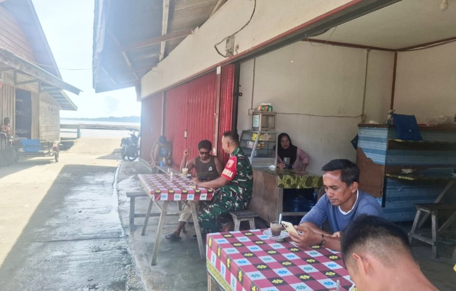 Sambil santai di salah satu warung di muara Siberut, Babinsa motivasi nelayan untuk selalu optimis meningkatkan hasil tangkapan dalam rangka memenuhi kebutuhan keluarga.
