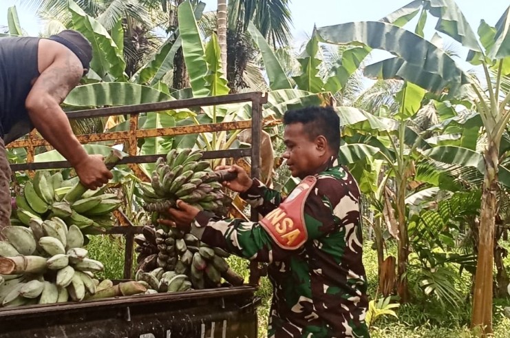 “Kita berharap hasil bumi warga petani seperti pisang terus meningkat, sehingga memberikan dampak ekonomi bagi masyarakat di wilayah teritorial Koramil 01/Sikabaluan” tukasnya.