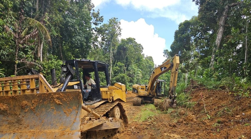 “Kondisi pengerjaan buka jalan lingkar Desa Bukit Pamewa ini sudah angka 50 persen” sebut Kordinator Lapangan Sertu Osten Sinaga, Jumat (21/2/2025).